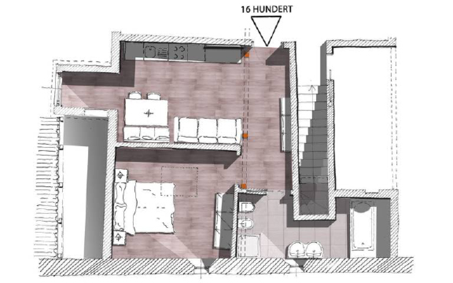 Mit Liebe und Charme entstand im Dachgeschoss unter dem denkmalgeschützten alten Holzdachbalken aus dem 16. Jahrhundert diese feine und bequeme Ferienwohnung mit 50 m2. Sie bietet Platz für 2 bis 4 Personen (1 Schlafzimmer und eine Schlafcouch im Wohnbereich mit Doppelbettfunktion und einer Liegefläche von 1,60 x 2,00 m und eine Komfortmatratze mit 18 cm sorgt für guten erholsamen Schlaf).
